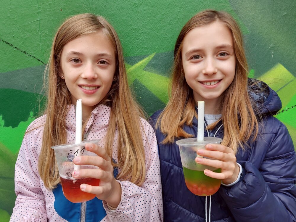 Selbstgemachte Snacks zum Reinbeißen dürfen natürlich auch nicht fehlen: Gemeinsam rollen die Teilnehmerinnen und Teilnehmer Energy Balls nach eigenen Rezepten, mischen pflanzliche Aufstriche und experimentieren mit außergewöhnlichen Proteinquellen wie Mehlwürmern oder Grillen. Passend zum Fokus auf Nachhaltigkeit entstehen zudem essbare Verpackungen aus Kartoffelstärke. Das optische Highlight bilden Etiketten aus Esspapier, die ganz stilecht mit selbstgemachtem Gummibärchenkleber befestigt werden. Und wer weiß – vielleicht entsteht hier gerade der nächste Pausenhof-Trend von morgen?